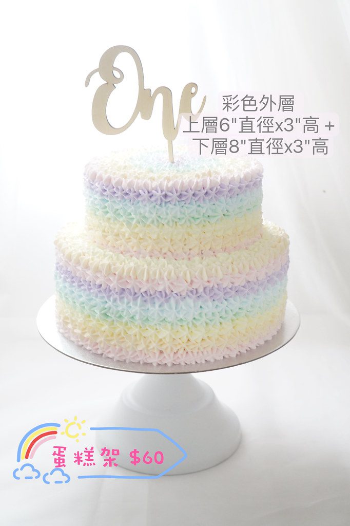 | 蛋糕外層顏色/款式選項 Colour/Style | 彩色 Rainbow, 漸變啡色 Gradient Brown, 漸變粉橙色 Gradient Orange, 漸變粉紅色 Gradient Pink, 漸變粉紫色 Gradient Purple, 漸變粉綠色 Gradient Green, 漸變粉藍色 Gradient Blue, 漸變粉黃色 Gradient Yellow, 白色 White, 粉橙色 Orange, 粉紅色 Pink, 粉紫色 Purple, 粉綠色 Green, 粉藍色 Blue, 粉黃色 Yellow |